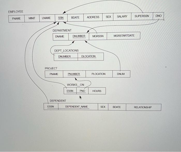 7. Find The Names Of Female Employees Who Work On Projects Controlled By The ‘Finance’ Department. Using The Schema In Figure 1.2. (20 Points) 8. Retrieve A List Of Names, Bdate, Relationship Of Dependents Of Each Male Employee In The ‘Research’ Department. Using The Schema In Figure 1.2. (20 Points)