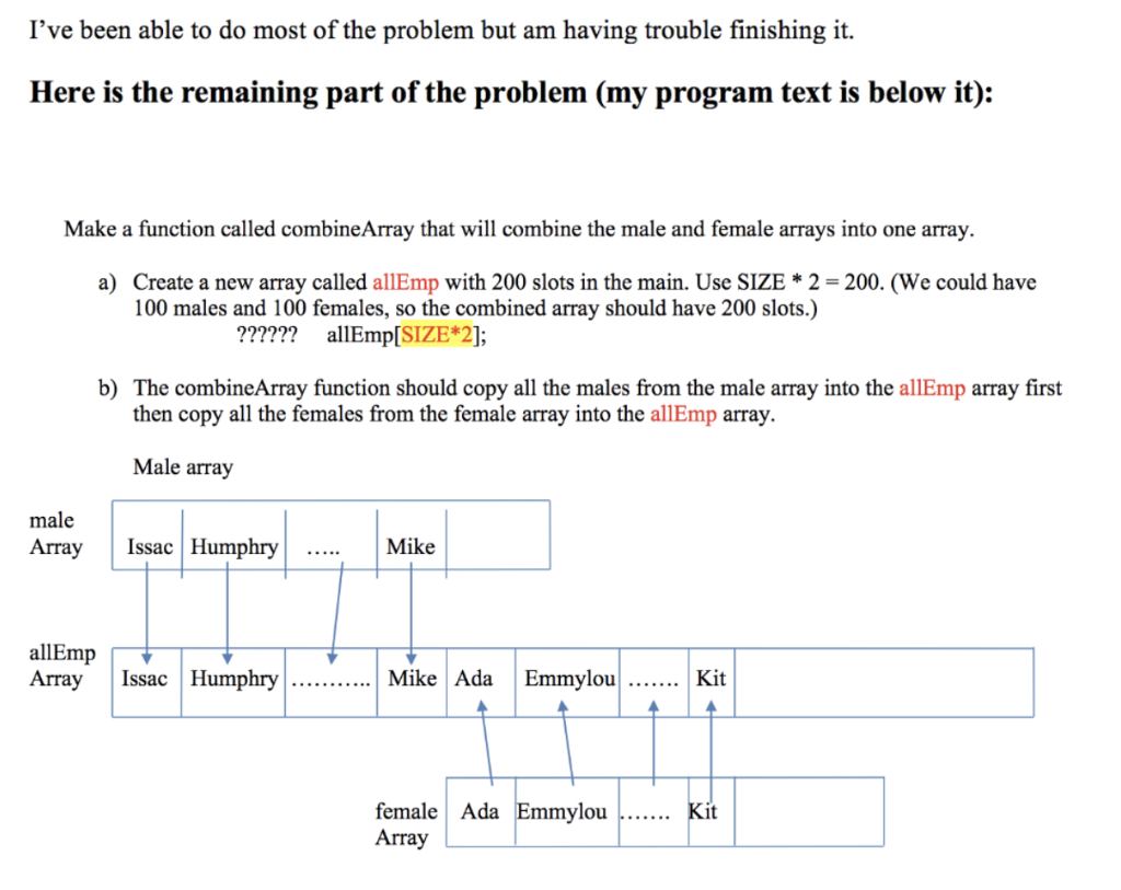 outfileArray(mAr, male); //call outfileArray to output the lastand first names of all the employees from the male array to theoutput file the user specifies